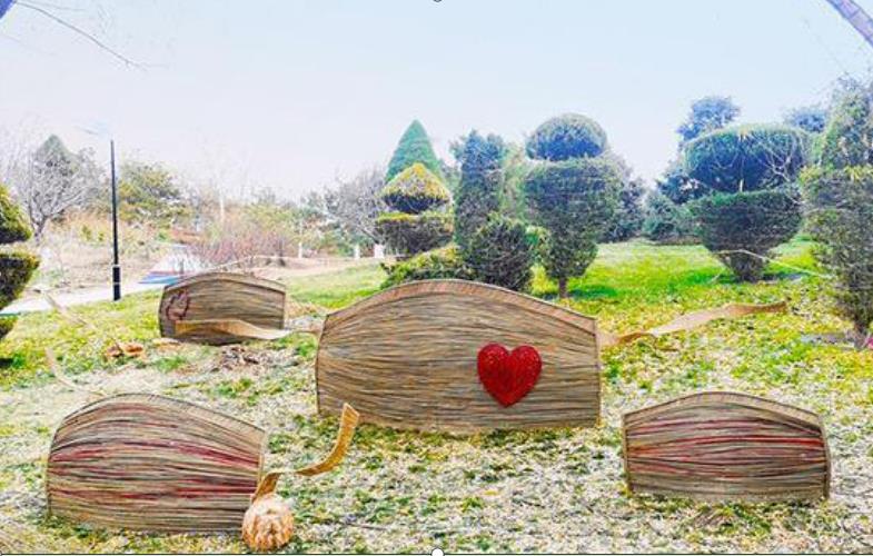 地景藝術(shù)以“生態(tài)環(huán)保、循環(huán)利用、變廢為寶”為理念,以園林廢棄物如柳樹枝、海棠枝、竹枝、桃枝等為主材料,通過設(shè)計師之手把這些變成了一個個栩栩如生的作品,為冬季景觀增色添彩。