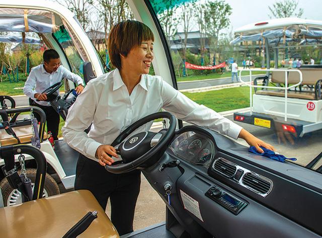 雄安郊野公園游客觀光車的司機準(zhǔn)備接待游客。