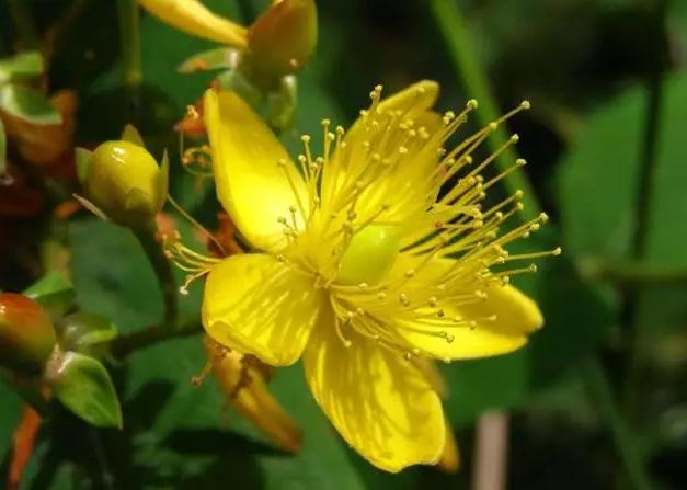 例如金絲桃花朵上的金黃色小蕊,長長地伸出于花冠之外;金鏈花的黃色蝶形花,組成了下垂的總狀花序;錦葵科的拱手花籃,朵朵紅花垂于枝葉間,好似古典的宮燈;帶有白色巨苞的珙桐花,宛若群鴿棲息枝梢。