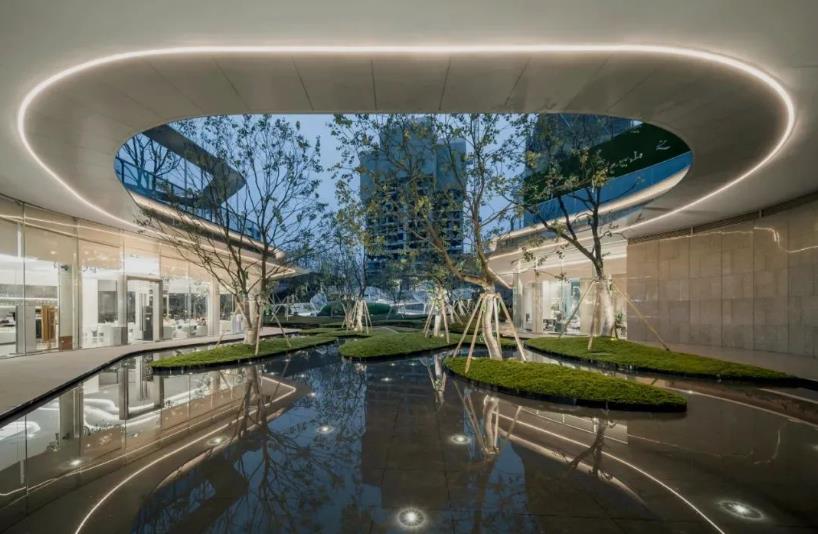 燈帶,可以隱藏的形式弱化自身存在感,沿著相應(yīng)的空間輪廓漸次排布開(kāi)來(lái),凹出獨(dú)特的幾何或曲線造型。既能夠不顯得突兀雜亂,也能在夜晚時(shí)分綻放光彩,賦予景觀的第二套屬性。
