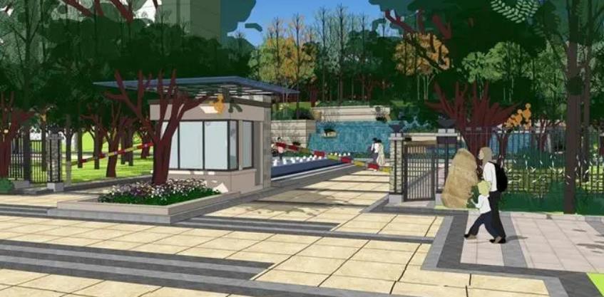 在設(shè)計住宅區(qū)的入口時,首先要考慮的是人員和貨物的流動。除了一般通告功能外,它還具有指導(dǎo)和安全性的功能要求。一般來說,入口景觀設(shè)計不僅要有對外交流,還要有內(nèi)部防衛(wèi)守護(hù)保護(hù)作用。