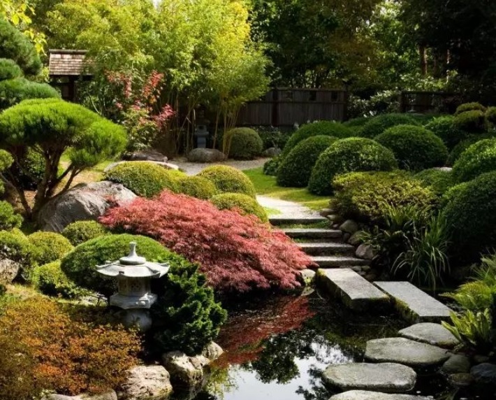 庭院的布局其實(shí)有很多規(guī)律可循,例如在我國的文學(xué)藝術(shù)作品當(dāng)中,常用的起、承、轉(zhuǎn)、合,運(yùn)用到園林的布局上便體現(xiàn)為疏、密、曲、直,可以通過高矮大小植物的排列組合,讓空間更有層次感、色彩感,還可以打造出舒適自在的感覺。